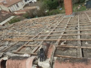 • dépose des tuiles, faîtages, rives, liteaux